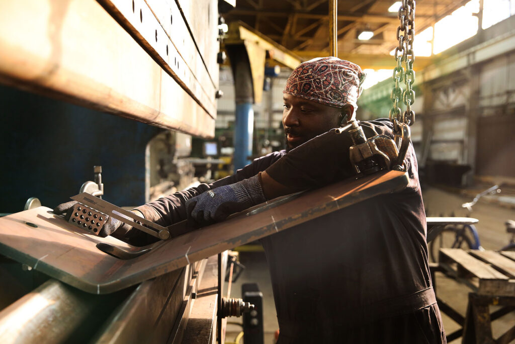 Bending & Forming 750 and 350 Capacity Press Brakes 1/16″ to 5/8″ thick up to 16′ bed lengths Up to 1-1/4″ thick at narrower lengths